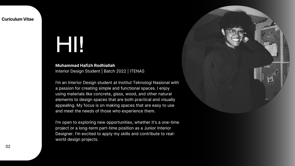 I'm an Undergraduate interior design student with a passion for creating simple and functional spaces. I enjoy using materials like concrete, glass, wood, and other natural elements to design spaces that are both practical and visually appealing. My focus is on making spaces that are easy to use and meet the needs of those who experience them.
