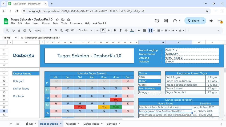Sistem Dasbor Manajemen Tugas (Task Management) di Google Sheets