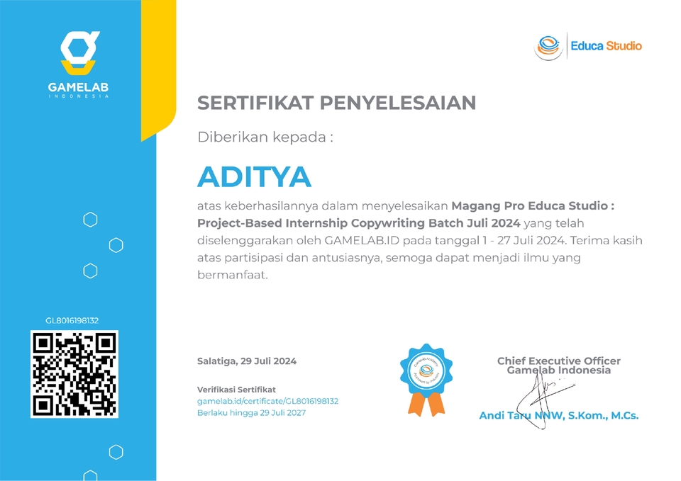 Meskipun saya baru memulai karir sebagai copywriter, saya memiliki passion besar dalam menulis dan menciptakan konten yang menarik serta persuasif. Saya percaya bahwa setiap kata memiliki kekuatan, dan saya berkomitmen untuk membantu bisnis menyampaikan pesan mereka dengan cara yang kreatif dan efektif. Spesifikasi khusus di Bidang Industri Fashion.