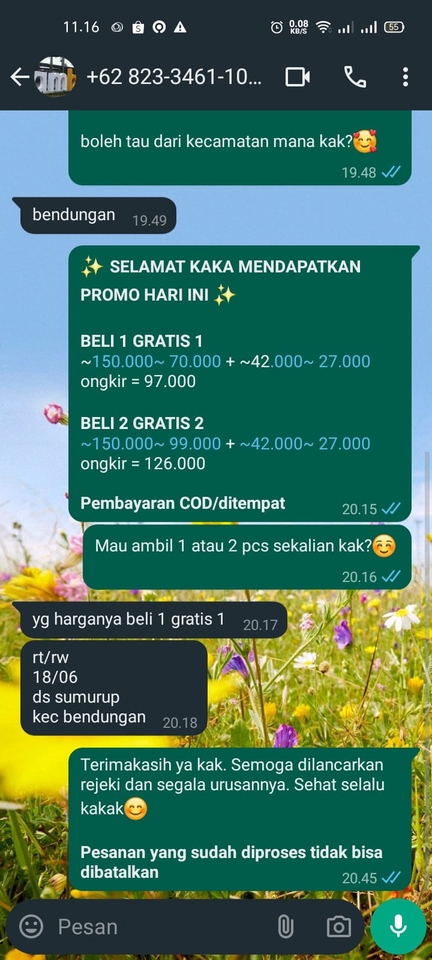 Halo, saya Hani :) saya memiliki kemampuan menjadi customer service online untuk mencapai target yg telah ditentukan perusahaan. Berikut kualifikasi diri saya: 1. memiliki pengalaman kerja sebagai customer service online dari tahun 2018 - sekarang 2. mampu berkomunikasi dengan baik 3. problem solving 4. memiliki skill negosiasi 5. mampu menghandle > 100 lead per hari untuk pekerjaan ini, saya menawarkan jasa closing lead dengan jenis produknya bisa didiskusikan via chat terlebih dahulu Langkah Pekerjaan 1. klien mengirimkan product knowledge via chat dalam bentuk word 2. cs mengirimkan email & no. WA 3. Proses memasukkan selly & balas cepat yg dibutuhkan (max 1 jam) 4. testing lead jika dibutuhkan 5. lead masuk > cs balas via WA > input closing > input laporan spreadsheet 6. selesai