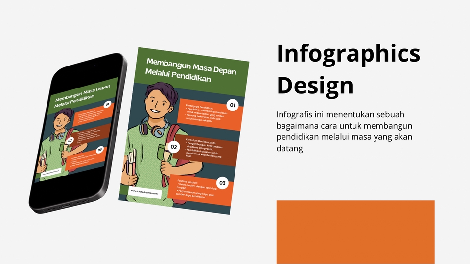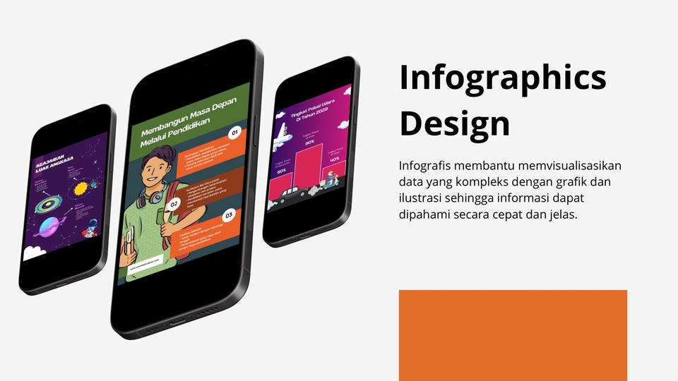Infografis membantu memvisualisasikan data yang kompleks dengan grafik dan ilustrasi sehingga informasi dapat dipahami secara cepat dan jelas. - infographics Sekolah - Infographics Perusahaan - Infographics dll Langkah Pekerjaan 1. Klien memesan produk 2. Klien memberikan biref kepada desainer 3. Kami kerjakan dan memberikan desain kepada klien 4. Memberikan revisi sesuai paket yang di pesan 5. Memberikan revisi desain ke klien 6. Klien mensetujui desain dan pesanan selesai