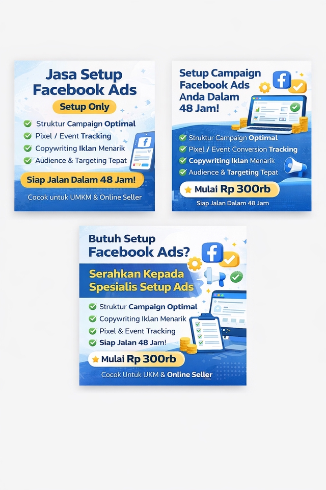 Jasa Setup Facebook Ads & Instagram Ads (Setup Only) untuk UMKM, online seller, dan pebisnis yang mau iklan langsung jalan dengan struktur yang rapi, benar, dan siap menghasilkan leads/penjualan. Cocok buat kamu yang: ✔ Baru pertama kali pakai Meta Ads ✔ Sering boncos karena setting salah ✔ Nggak paham pixel, audience, atau campaign structure ✔ Mau langsung pakai akun iklan sendiri tanpa ribet Saya bantu setup dari nol sampai siap running, jadi kamu tinggal ON kan iklannya saja. 🔥 Yang Akan Kamu Dapatkan: ✔ Struktur campaign profesional (Awareness / Leads / Sales) ✔ Setup Business Manager & Ad Account ✔ Pixel / Event Tracking terpasang rapi ✔ Audience targeting sesuai produk ✔ Copywriting dasar untuk iklan ✔ 1–3 campaign siap jalan ✔ Testing adset & basic optimization ✔ Panduan cara nyalain/matiin iklan sendiri ✔ FREE konsultasi strategi iklan 💡 Kenapa pakai jasa saya? • Fokus hasil (leads & sales), bukan cuma reach • Berpengalaman handle UMKM & online seller • Setting rapi, bukan asal boost post • Cepat & responsif • Cocok untuk budget kecil–menengah ⏳ Estimasi pengerjaan: 1–3 hari kerja 📌 Note: Ini jasa SETUP ONLY (bukan kelola bulanan) Kalau mau iklan kamu lebih siap & minim boncos, serahkan setup-nya ke ahlinya. Klik order sekarang — saya bantu sampai siap running 🚀