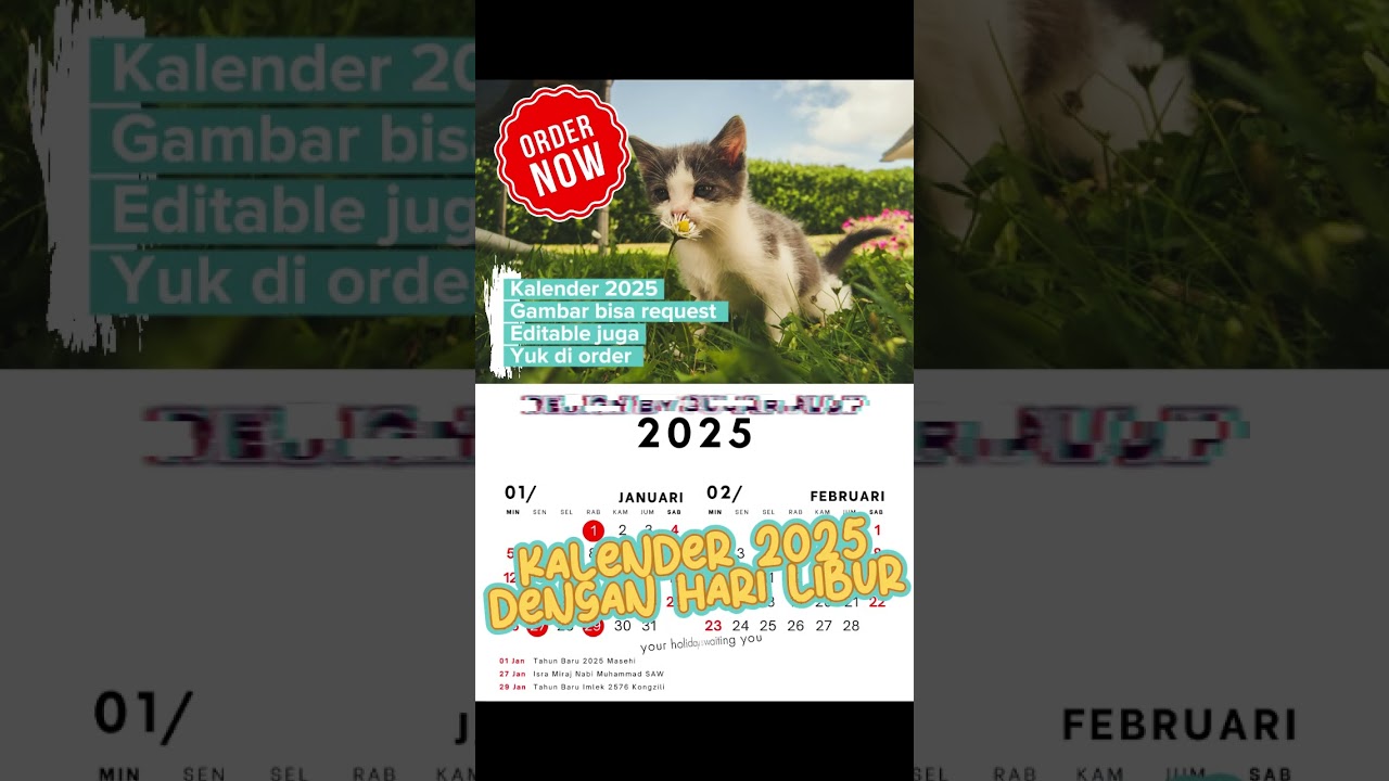 Butuh kalender siap cetak yang juga bisa kamu edit sesuai kebutuhan? Saya menyediakan jasa desain template kalender tahunan atau bulanan dengan tampilan profesional, lengkap dengan hari libur nasional dan cuti bersama. ✅ Desain bisa disesuaikan (warna, font, logo, dll) ✅ Format siap cetak (PDF, JPG) dan editable (AI, PSD, Canva – sesuai permintaan) ✅ Cocok untuk keperluan pribadi, kantor, sekolah, atau promosi brand ✅ Tersedia gaya minimalis, formal, atau custom sesuai brief ✅ Bisa request penambahan event penting, tanggal khusus, atau quotes bulanan 🎯 Dengan desain yang informatif dan visual menarik, kalender ini cocok digunakan sebagai: - Kalender meja atau dinding - Kalender digital/print untuk dibagikan ke klien atau karyawan - Media promosi dengan branding khusus Hubungi saya sekarang untuk mulai proyek desain kalendermu!