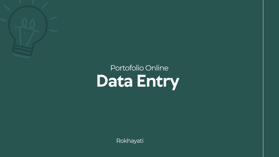 Saya Rokhayati, lulusan SMK dari jurusan Teknik Komputer & Jaringan, Saya seorang Freelance data entry yang memiliki kemampuan mengetik dengan baik dan akurat , serta terbiasa bekerja mengunakan aplikasi micrososft excel , google spread sheet dan beberapa aplikasi lainnya. Dan saya selau mencoba meyelesiakan pekerjaan saya dengan rapih , akurat dan tepat waktu.
