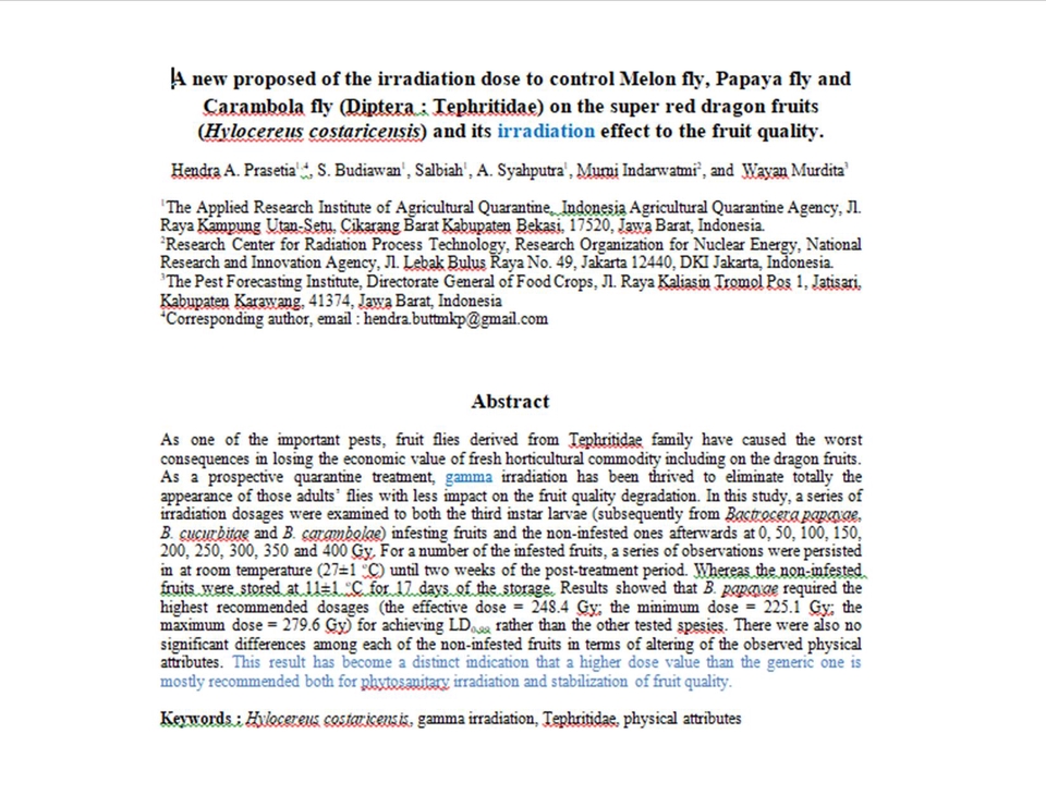 Lulusan Magister Sains Ilmu Pangan IPB University. Melayani jasa proofreading untuk penulisan artikel ilmiah dalam jurnal nasional maupun internasional. Pengalaman kerja reviewer/mitra bestari pada - Scientia Horticulturae (2020-2021) - Physiological and Molecular Plant Pathology (2021 - ...) - Postharvest Biology and Technology (2022-...) - Journal of Nutrition College (2024 -...)