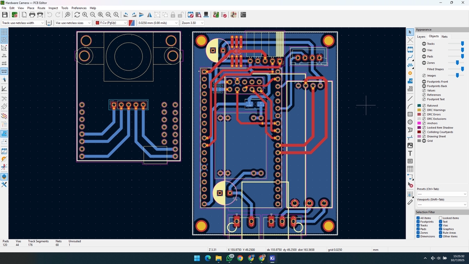 Saya melayani desain PCB, mulai dari pembuatan skematik, layout, hingga visualisasi 3D. Melayani desain PCB baik menggunakan komponen DIP ataupun SMD. Software: - Autodesk EAGLE - KiCAD PCB Langkah Pengerjaan: 1. Diskusi/konsultasi project 2. Desain skematik (jika diperlukan) 3. Routing layout PCB 4. Pengiriman hasil pengerjaan 5. Revisi (jika ada penyesuaian) 6. Pembuatan file-file yang diperlukan (PDF, BOM, Gerber Files, Drill Files, Component Placement, Desain 3D) 7. Pengiriman file output final Waktu Pengerjaan: - Sederhana | 1-2 Layer | 1-2 hari - Rumit | 1-2 Layer | 2-5 hari