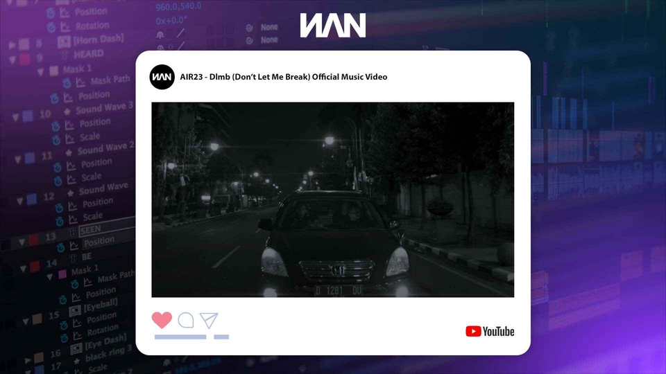 Rp250,0 rb- File output Full HD Quality Format .MP4 (Video Maksimal 30 menit) jika lebih akan ada penambahan fee sebesar 50K per/menit - Durasi pengerjaan 1-3 hari (Tergantung tingkat kerumitan) - Revisi unlimited Selama tidak merubah konsep (Lagu-Penambahan Konten-Durasi) - Colour Grading (Jika diperlukan) - Text Intro & Outro - Sound Design | Mixing (Jika diperlukan)