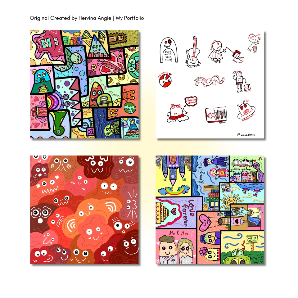 Halo! Perkenalkan nama aku Vina. Aku seorang Illustrator & Graphic Designer yang memiliki pengalaman kerja di dunia desain selama lebih dari 3 tahun. Disini aku menawarkan jasa desain doodle dengan HIGH PREMIUM QUALITY dengan harga yang terjangkau. Dalam pembuatan desain doodle, aku selalu menggunakan softwear pendukung seperti Adobe Illustrator, Ibis Paint X, dan Procreate. Aku akan selalu fokys pada kualitas orisinalitas dan detail. Apa yang akan klien dapatkan? - Desain dengan high resolution & high quality - Free 2x Revisi - Format file PNG dan AI "The best choice to get attractive and high quality design at affordable prices" So tunggu apa lagi, yuk order sekarang juga? Bisa langsung hubungi aku di Fastwork ya. Langkah Pekerjaan 1. Client menceritakan atau menjelaskan bagaimana konsep yang diinginkan, atau bisa juga pakai konsep milik aku 2. Membuat perjanjian mengenai harga, hak cipta, revisi dan waktu pengiriman ya