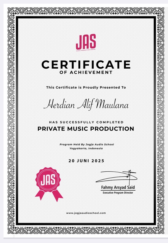 All in one kebutuhan project lagu & audio mu Halo Fren, Namaku Alif. Aku seorang Music Producer & Sound Enginner. Alumni dari Jogja Audio School & Advance Class Soba Studio. Kamu mau bikin lagu, editing audio podcast/storytelling, mixing mastering, sound design bahkan sampai scoring film? Tenang semua ada disini! Mau sharing seputar audio boleh banget atau kamu bingung gimana caranya rilis lagu? Tenang aku bakal bantu sampai lagu kamu rilis dan siap terima royalti Tinggal pilih paket yang sesuai dengan kebutuhan project kamu dan aku siap kerja sesuai dengan yang kamu mau 🙌🏻