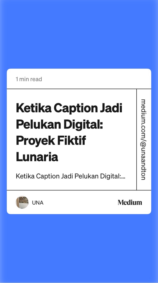 Hai! Aku UNA — freelance writer yang siap bantu kamu bikin caption menarik dan content plan mingguan dengan tone yang sesuai kebutuhan. Layananku cocok untuk: ✅ Toko online & UMKM ✅ Freelancer yang butuh tampil profesional ✅ Personal branding (coach, public figure, penulis, dsb.) ✅ Akun estetik yang ingin tampil konsisten 📌 Kenapa pilih aku? • ✍️ Tulisanku orisinal & sesuai audiens • 🎨 Terbiasa bikin konten yang personal, hangat, dan profesional • 📅 Nggak cuma nulis, tapi bantu kamu rapiin arah konten juga • 🌿 Fast response & komunikasi enak ⸻ 📩 Cara Pesan: 1. Pilih paket yang kamu mau 2. Kirim detail produk, akun, atau tema konten 3. Aku mulai kerjakan dalam 1–2 hari kerja 4. Revisi ringan? Bisa banget!