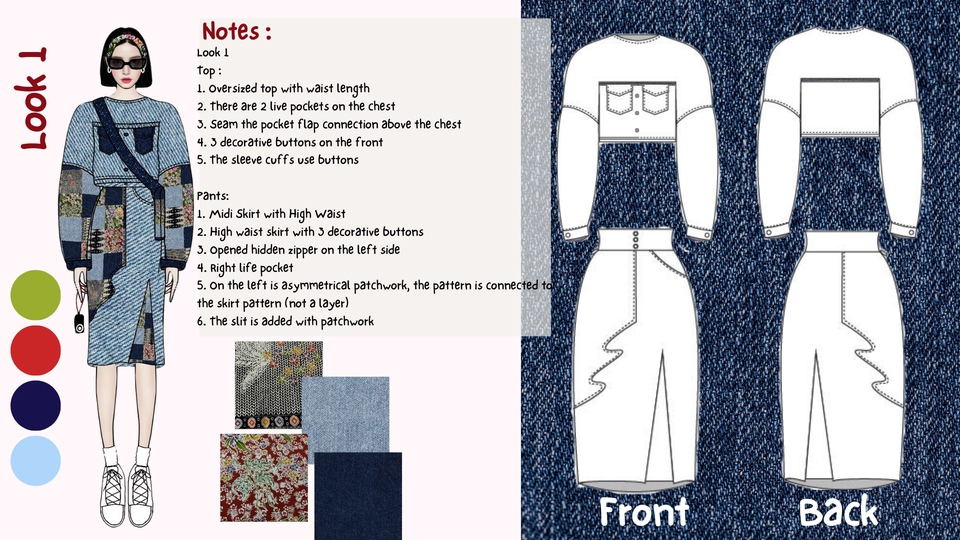 Rp349,0 rb- RTW (Ready To Wear) - 3 Design (Front and Back) - 3 Technical Drawing (front & back, measurement, fabric references) - Revision 2x