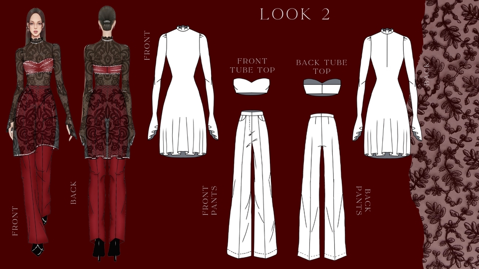 - • 3 Technical Drawing (Front & Back, Measurement, Fabric References, Fabric Manipulation)