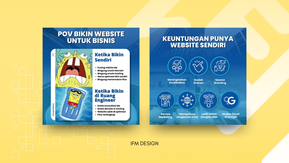 Rp375,0 rb+ Total 15 Desain Feed (png) + Termasuk 1 Postingan Carousel + Content planning + Desain eksklusif (dibuat khusus untuk anda) + Konsep desain sesuai brief + File yang di dapatkan, png, pdf, dan spreedsheet + 2 kali revisi desain (minor) + 1 kali revisi Perencanaan konten