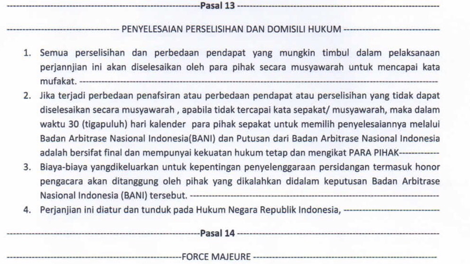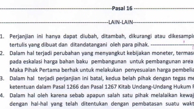 Rp500,0 rbDengan harga paket ini, anda akan mendapatkan draft perjanjian standar dengan layanan premium. *Syarat* Anda hanya perlu memberikan data identitas pihak yang akan terlibat dalam perjanjian, dan menjawab beberapa pertanyaan standar yang akan dimuat dalam perjanjian. *Revisi* Revisi bebas hingga sesuai dengan kebutuhan sebelum hasil anda setujui.