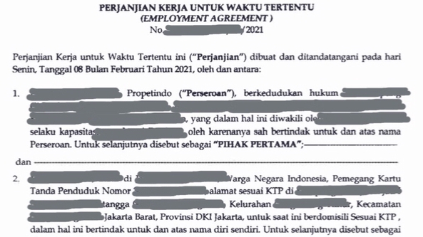 Pelayanan drafting kontrak/perjanjian/MoU dalam hal sewa-menyewa, jual-beli, kerjasama, karyawan dan sebagainya sesuai permintaan klien dan tentunya sesuai dengan ketentuan hukum yang berlaku. Hasil dapat direvisi sesuai dengan kebutuhan klien. Langkah Pekerjaan 1. Klien berkonsultasi perihal substansi dan tujuan penyusunan perjanjian 2. Kesepakatan harga 3. Klien memberikan informasi/data yang diperlukan dalam perjanjian yang akan disusun 4. Proses pengerjaan 5. Review dan revisi (jika ada) dari klien 6. Proses pengiriman hasil kerja jika sudah sesuai
