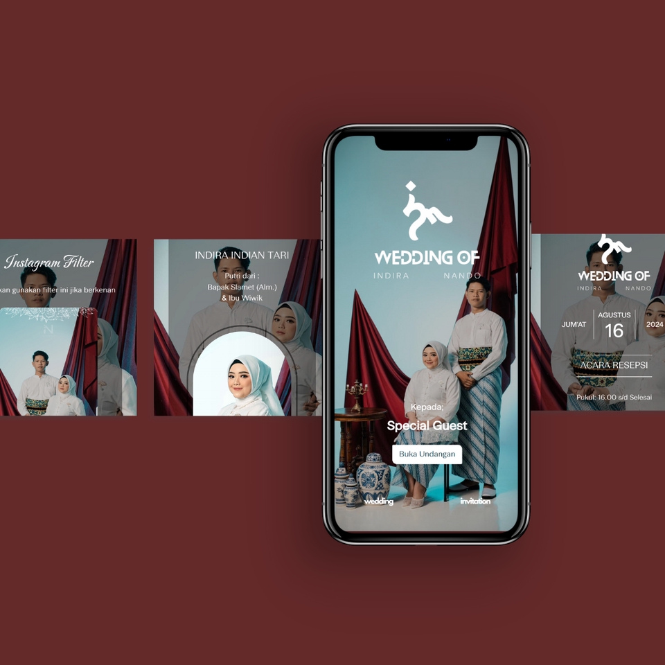 Rp300,0 rbCustom desain akan membuat acara Anda semakin meriah: - Revisi Sepuasnya - Unlimited Tamu Undangan - Hitung Mundur Waktu Acara - Integrasi Google Maps - Background Music - 10+ Foto Galeri - Quotes - Form RSVP & Ucapan - QR Code Check-In Acara - Layar Sapa & Check-In Counter - Buku Tamu - Amplop Digital & Tanda Kasih - 1 Video - Live Streaming - Custom Desain