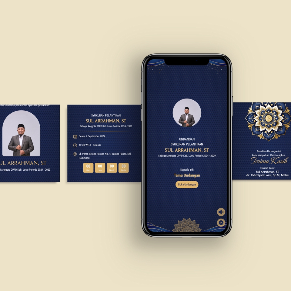 Menyediakan jasa pembuatan website undangan online digital terlengkap untuk berbagai acara, baik itu pernikahan, syukuran, ulang tahun, grand opening, graduation atau acara formal lainnya semua ada. Terdapat banyak variasi desain dan fitur yang komplit dengan domain yang unik (inv.acaranya.id). Silahkan chat untuk cek catalog desain undangan digital sesuai kebutuhan acara Anda: - Pernikahan - Ulang Tahun Anak & Dewasa - Khitan - Syukuran - Pelantikan - Aqiqah - Grand Opening - Perpisahan / Pelepasan - Graduation - Seminar - Natal - Seminar - Open House - Wisuda - Meeting - Keperluan Kantor / Kerja - DLL NOTE: - Sistem paket harga, setiap harga memiliki fitur yang berbeda. - Permintaan demo atau preview bisa chat. - Pengerjaan undangan digital paling lama 1x24 jam! Bisa lebih cepat bahkan hitungan menit. - Proses pengerjaan akan dimulai setelah Anda mengisi data informasi acara dan melakukan pembayaran. - Semua tema dapat disesuaikan, baik menggunakan foto atau tanpa foto. - Semua fitur bisa digunakan untuk semua tema. FULL SUPPORT SAMPAI HARI H - Selalu ready kapanpun untuk membantu Anda terkait undangan digital yang dipesan. - Konsultasi gratis! Langkah Pekerjaan 1. Konsultasi Acara dan Pemilihan Desain 2. Proses Pembayaran 3. Pengisian Formulir Informasi Acara 4. Proses Pengerjaan 5. Tahap Revisi Tanpa Batas (Jika Diperlukan) 6. Pengiriman Link Undangan Digital & Panduan Penggunaan Undangan Digital