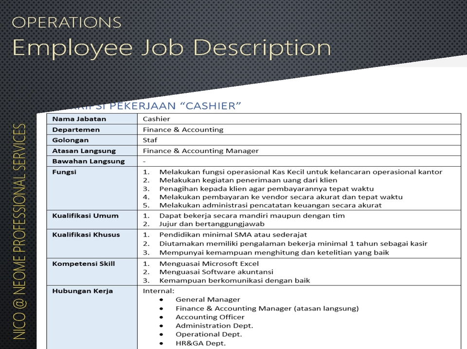 Professional quality writing of your business documents in English or Bahasa Indonesia. Guaranteed professional results for Operational (SOP, Job Description, KPI, ISO Quality Process) and Marketing purposes (articles, whitepaper, blog posts). Done by professional worker with more than 20 years of experience. Langkah Pekerjaan 1. Nego scope dan deal 2. Pemilik job memberikan materi dan arahan 3. Job dimulai dan submit hasil 4. Pemilik job melakukan review 5. Revisi (bila ada)