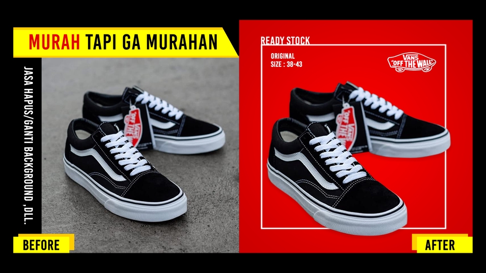 Assalamu'alaikum Wr Wb Selamat datang di FREAKCLASSGRAPHIC dan selamat mencoba memakai jasa cepat kami. Apakah anda sedang mencari jasa Freelancer editor yang cepat ? Anda seorang pembisnis online, pasti sedang mencari orang untuk membuat desain produk anda lebih menarik dan kekinian, tepat sekali anda mengunjungi kami, kami melayani jasa hapus/ganti background ,tambah teks dan watermark/logo. Price List Jasa 1-12/Foto 15K PAKET MURPI (MURah PIsan) 1. 65 Foto 200K (Hapus/Ganti Background, Tambah teks/Watermark/logo) 2. 100 Foto 300K (Hapus/Ganti Background, Tambah teks/Watermark/logo) 3. 200 Foto 450K (Hapus/Ganti Background, Tambah teks/Watermark/logo) Gratis Revisi (bila ada) Pengerjaan = 24Jam Privasi File Terjamin. File yang sudah selesai akan dikirim format png,jpg dan psd. (disesuaikan) *Pekerjaan bisa disesuaikan sesuai keinginan Monggo dicoba Jasa Kami , Yakin Gaakan Nyesel bro & sist. ini merupakan kesempatan anda guna memperindah tampilan penjualan anda. Langkah Pekerjaan 1. sebelum mengerjakan berikan kami kami arahan atau contoh gambar yang akan kami edit. 2. kumpulkan foto yang akan kami kerjakan dalam satu folder dan beri keterangan folder (Catatan : Kirim foto dengan resolusi terbaik itu dapat mempengaruhi hasil editing) 3. pengerjaan dan pengiriman file disesuaikan dengan waktu yang sudah disepakati 4. diberikan revisi (bila ada) 5. pengiriman file melalui e-mail atau fastwork (disesuaikan)