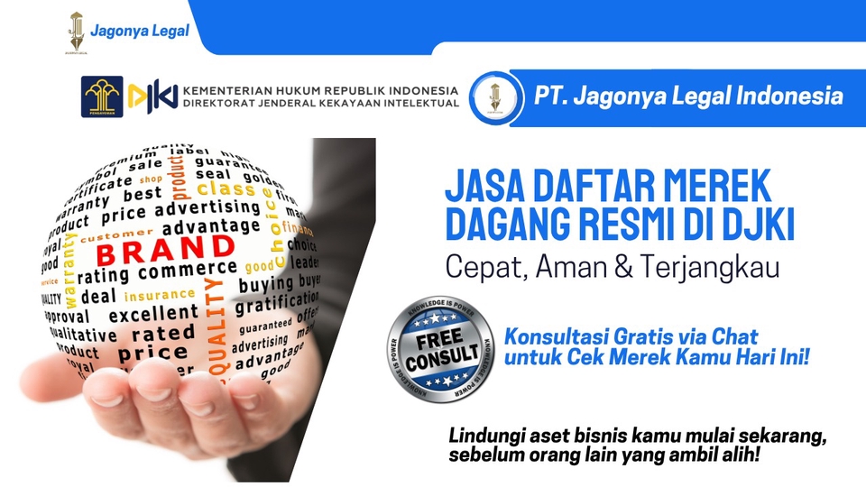 🔍 Ingin Merek Bisnis Kamu Terdaftar Resmi di DJKI? Daftar Merek Skincare & Kosmetik Resmi – Aman, Legal, & Terlindungi DJKI Jangan biarkan nama brand kamu dipakai orang lain! Tanpa pendaftaran merek, kamu tidak punya hak hukum untuk melindungi nama, logo, atau identitas bisnis kamu. Banyak pelaku usaha menyesal karena terlambat daftar dan akhirnya mereknya dicuri kompetitor. ✅ Solusinya? Urus Pendaftaran Merek Sekarang Juga! Saya siap bantu urus pendaftaran merek dagang ke DJKI Kemenkumham secara resmi, mudah, dan terjangkau. Cocok untuk UMKM, pemilik brand kuliner, fashion, skincare, startup, hingga produk digital. 📌 Layanan Termasuk: * Cek merek gratis (apakah sudah dipakai orang lain) * Penyusunan dokumen sesuai persyaratan DJKI * Pengajuan online ke DJKI via akun resmi * Pendampingan sampai sertifikat keluar * Konsultasi revisi / sanggahan jika diperlukan 🧾 Contoh Hasil Nyata: Klien kami, pemilik usaha "Rasa Nusantara", awalnya hanya berjualan via Instagram. Setelah merek didaftarkan, mereka lebih percaya diri membuka cabang & masuk e-commerce besar tanpa takut plagiarisme. Kini merek mereka resmi terdaftar dan terlindungi hukum! 💬 Kenapa Harus Sekarang? * Proses daftar memakan waktu 6-12 bulan * Siapa cepat dia dapat! Siapa daftar duluan, dia yang punya hak. * Nama brand kamu bisa direbut kapan saja kalau belum terdaftar! * Masa Berlaku Sertifikat HAKI ( Merek ) ; 10 Tahun ( di perpanjang setiap 10 Tahu ) * Masa Berlaku Sertifikat HAKI ( Hak Cipta ) : 50 Tahun ( seumur hidup ) 📲 Klik "Pesan Sekarang" atau Konsultasi Gratis via Chat untuk Cek Merek Kamu Hari Ini! Lindungi aset bisnis kamu mulai sekarang, sebelum orang lain yang ambil alih! Persyaratan : 1. KTP 2. No. HP 3. Logo/ Merek Yang mau di daftarkan ( File bentuk, Jpg, Jpeg, PNG) 4. Surat Pernyataan dari pemilik merek ditanda tangani idiatas materai 10000 5. Kelas Merek ( Kita yang bantu sesuai kategori merek )