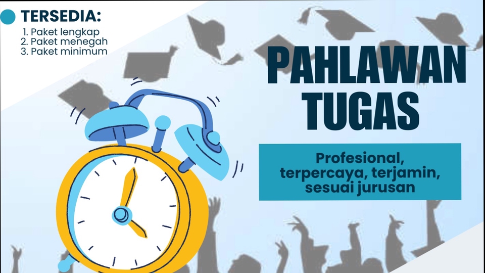 Saya menawarkan jasa tugas bahasa, sastra, dan pendidikan. Saya juga memiliki jam terbang tinggi dalam menyelesaikan tugas untuk jurusan fakultas pendidikan lainnya. Langkah Pekerjaan 1. Pengerjaan mengikuti jadwal antrian 2. Pengerjaan dapat diprioritaskan jika ingin membeli antrian prioritas