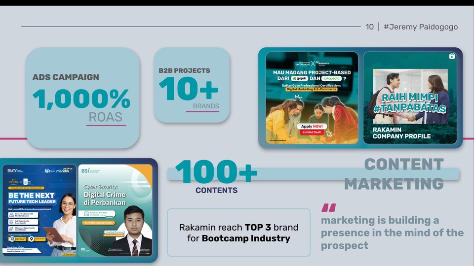 Skilled and experienced on Digital Marketing and Brand Marketing with over 7 years with various industries. Proven ability to work on offline and online platforms such ads internet advertising, paid articles, media release, events, social media, content marketing, and many others.