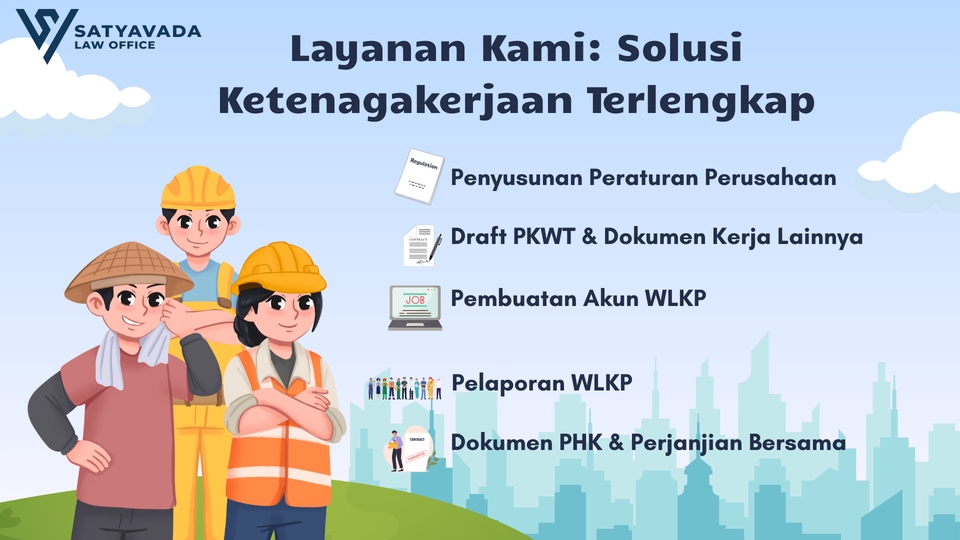 Layanan ini dirancang untuk membantu perusahaan dalam memenuhi kebutuhan administrasi, kepatuhan, dan pengelolaan ketenagakerjaan secara menyeluruh. Pengelolaan dokumen ketenagakerjaan yang tepat bukan hanya menjadi kewajiban regulasi, tetapi juga fondasi penting untuk menjaga hubungan kerja yang harmonis, mencegah potensi perselisihan, dan membangun sistem kerja yang profesional di dalam perusahaan. Sebagai konsultan ketenagakerjaan dan hubungan industrial, kami menyediakan pendampingan mulai dari konsultasi hingga penyusunan berbagai dokumen ketenagakerjaan yang disesuaikan dengan peraturan perundang-undangan terbaru. Setiap dokumen disusun dengan bahasa hukum yang jelas, sistematis, dan mudah dipahami oleh HR maupun karyawan, sehingga dapat diterapkan secara efektif dalam operasional perusahaan. Layanan ini sangat cocok bagi perusahaan yang baru berdiri dan memerlukan dokumen ketenagakerjaan dari awal, perusahaan yang ingin memperbarui regulasi internal agar sesuai dengan aturan terbaru, maupun perusahaan yang sedang menghadapi isu hubungan industrial dan membutuhkan dukungan administratif yang tepat. Kami memastikan setiap proses dan dokumen yang dihasilkan telah mengacu pada peraturan ketenagakerjaan, termasuk ketentuan dalam UU Ketenagakerjaan, PP 35/2021, serta regulasi turunan yang berlaku. Dengan pendekatan yang komunikatif, responsif, dan fleksibel, kami membantu perusahaan menyusun dokumen secara profesional, rapi, valid, dan dapat dipertanggungjawabkan. Tujuan kami adalah memberikan ketenangan dan kepastian bagi manajemen perusahaan, memastikan seluruh dokumen ketenagakerjaan tersusun dengan benar, serta menciptakan kondisi hubungan industrial yang stabil, kondusif, dan sesuai aturan. Jika perusahaan Anda membutuhkan pendampingan konsultan untuk menata, menyusun, memperbarui, atau mengelola dokumen ketenagakerjaan dan hubungan industrial, layanan ini merupakan solusi lengkap yang dapat disesuaikan dengan kebutuhan operasional dan kebijakan perusahaan Anda.