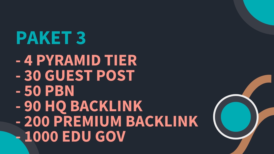 Rp2,0 jtFitur: - 4 Pyramid Tier - 30 Guest Post - 50 PBN - 90 HQ Backlink - 200 Premium Backlink - 1000 EDU GOV