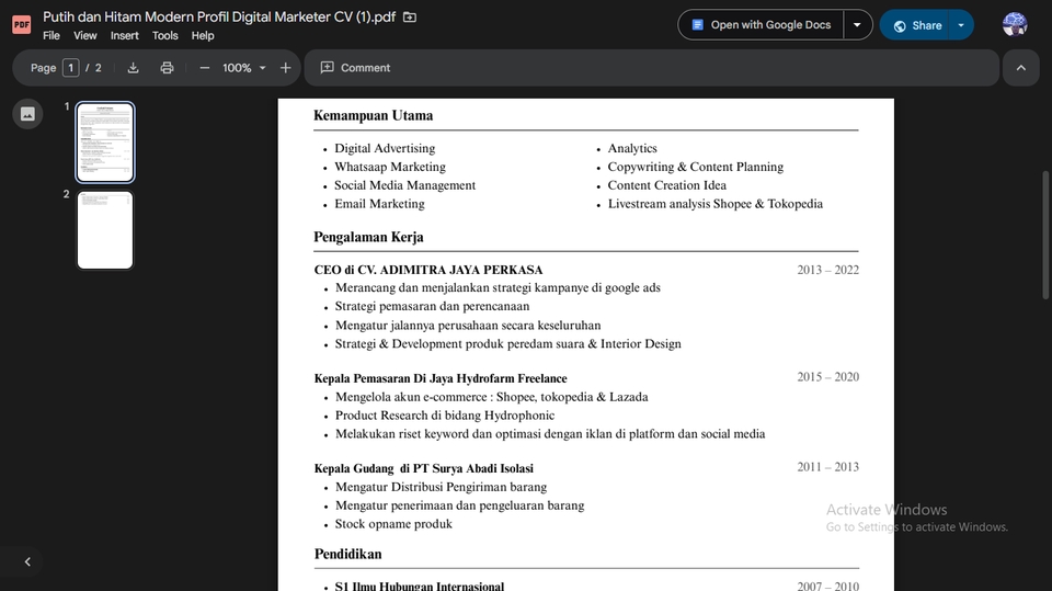 Halo! Saya Content Creator & Digital Marketer Saat ini saya fokus mengelola branding dan strategi digital (content creation, copywriting, Ads) untuk produk property, produk digital dan juga retail. Saya mahir mengelola affiliate marketing untuk pemasaran di social media Mari berkolaborasi untuk meningkatkan ROI digital brand Anda!