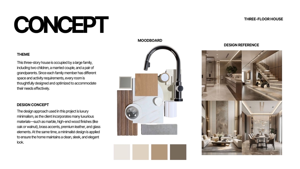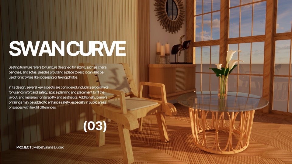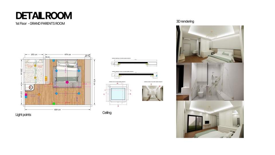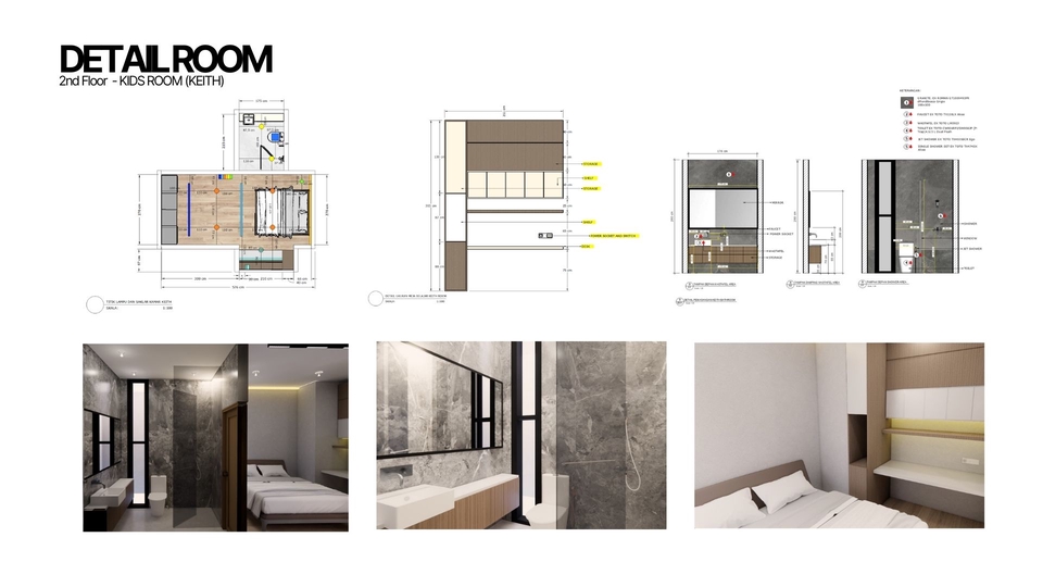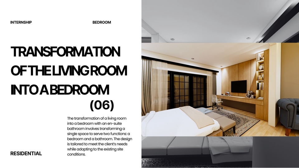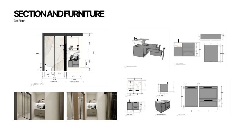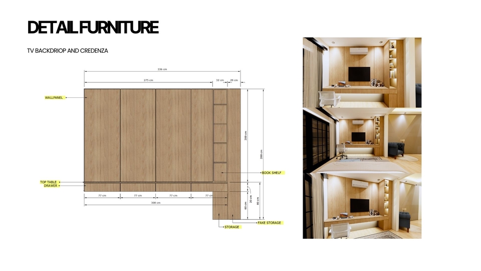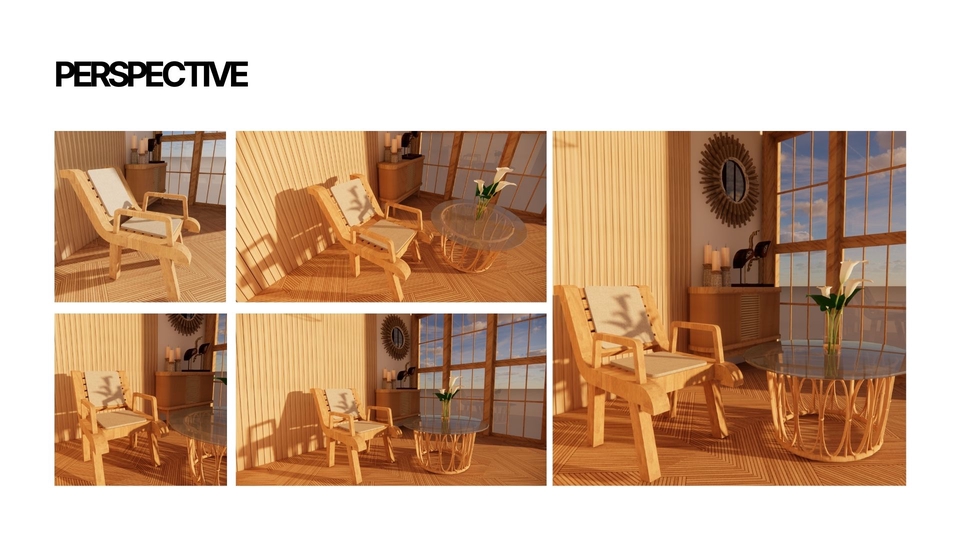 Membuat 3d desain interior dengan bantuan sketchup dan enscape sebagai aplikasi rendering akhir. Pembuatan 3d juga dibuat berdasarkan layout 2d yang telah dibuat, penataan layout dan konsep yang matang lalu tahap finishing dengan rendering Langkah Pekerjaan 1. Melakukan brief pekerjaan 2. Mengerjakan konsep awal 3. Memasuki tahap desain 4. Revisi 5. Finishing