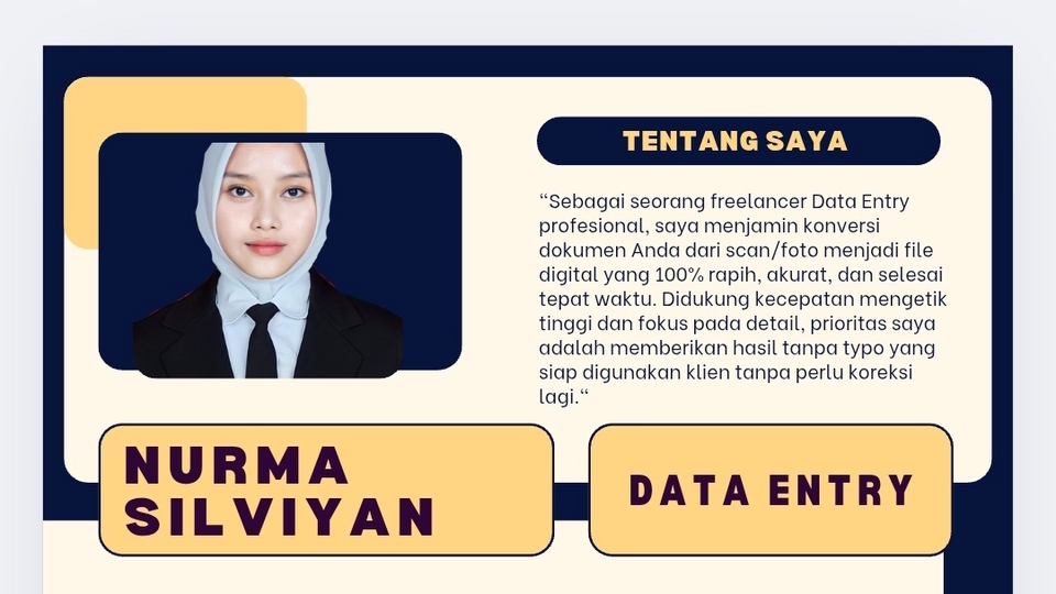 Saya adalah seorang profesional Desainer Grafis dengan pengalaman lebih dari 3 tahun. Saya unggul dalam menciptakan desain yang menarik dan conversion-focused. Saya menjamin komunikasi yang cepat, kualitas hasil yang teruji, dan penyelesaian proyek tepat waktu. Prioritas saya adalah membantu klien mencapai tujuan bisnis mereka melalui keahlian teknis terbaik.