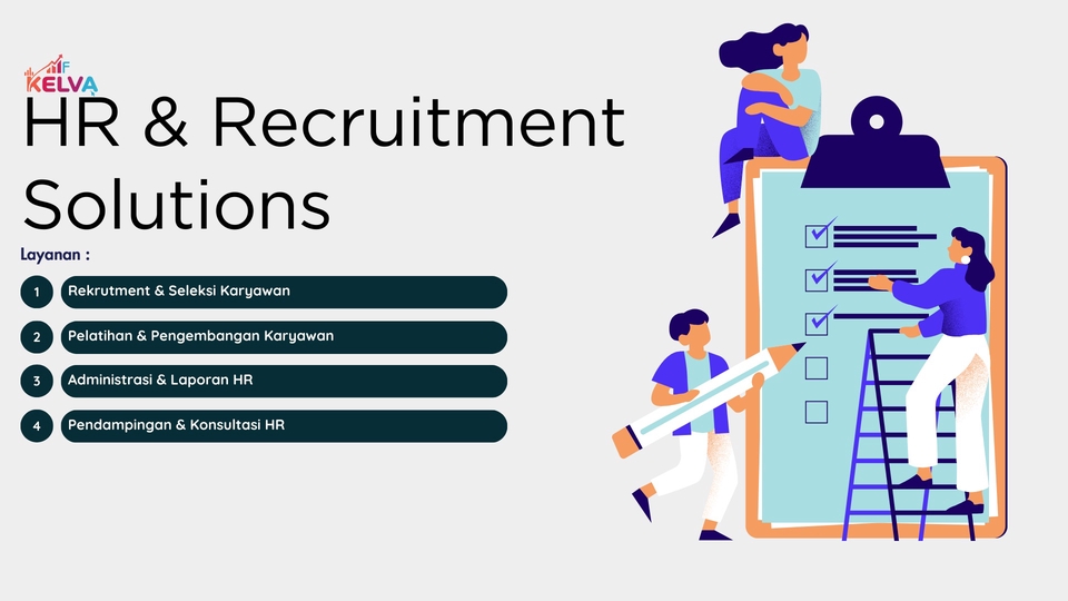 - • Pendampingan & konsultasi HR penuh (misal: perbaikan proses HR, komunikasi internal, strategi SDM).