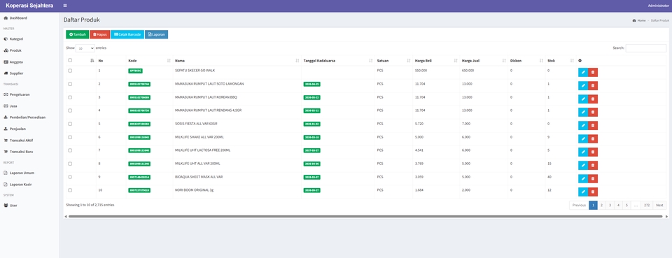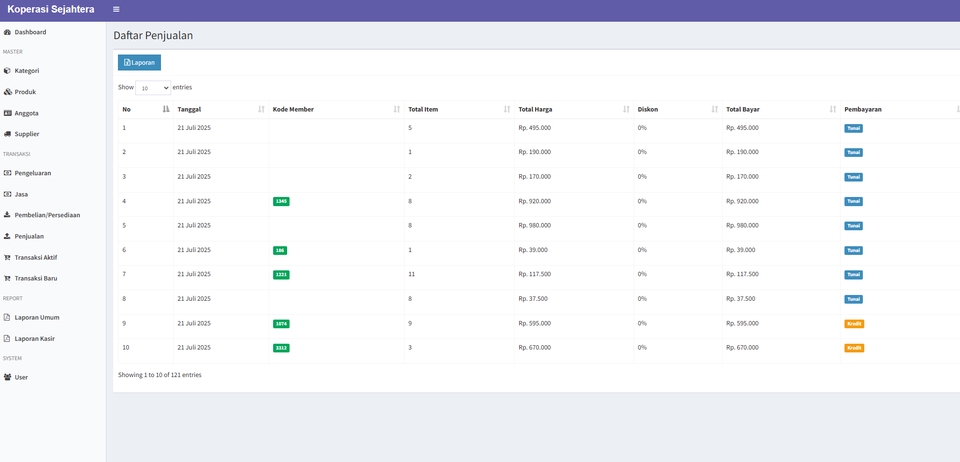 Rp6,0 jtPelaporan Penjualan, Pembelian, Stok Produk, SHU, HPP, Jurnal Penjualan, Jurnal Pembelian, dan 3 role (SuperAdmin, Admin Kasir, dan Kasir)
