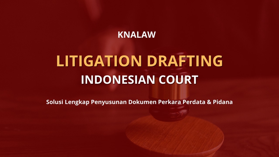 Kami menyediakan jasa hukum berupa drafting dokumen litigasi untuk mendukung kebutuhan Anda dalam proses persidangan Pidana maupun Perdata. Layanan kami mencakup penyusunan gugatan, eksepsi, jawaban, replik, duplik, pembuktian, hingga kesimpulan, serta surat permohonan lainnya sesuai ketentuan hukum acara di Indonesia. Setiap dokumen disusun secara profesional, sistematis, dan sesuai prosedur. Dengan pengalaman dan ketelitian, kami memastikan dokumen yang dihasilkan memiliki kekuatan argumentasi yang jelas, relevan, dan meyakinkan. Litigasi bukan hanya soal berargumen di pengadilan, tapi juga bagaimana dokumen hukum Anda tersusun dengan rapi dan kuat. Demi menjaga kerahasiaan, seluruh data dan dokumen yang Anda berikan dijamin privasinya dan akan dihapus/destroy secara permanen dalam waktu 7 hari setelah pengerjaan selesai.