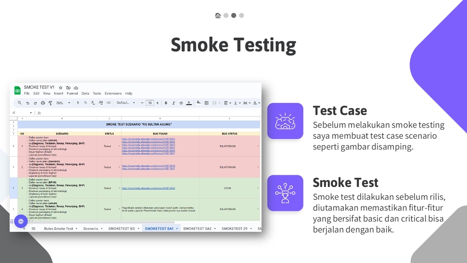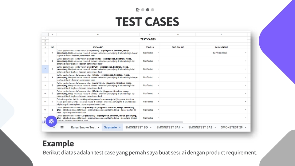 Rp500,0 rb1. Pembuatan Test Script 2. Spreadsheet Progress & Bugs 3. Repo dengan Github/Gitlab Pengerjaan dilakukan dalam 1 Sprint (5 hari kerja atau 4jam/hari). Dalam satu hari 3-4 Test Scenario.