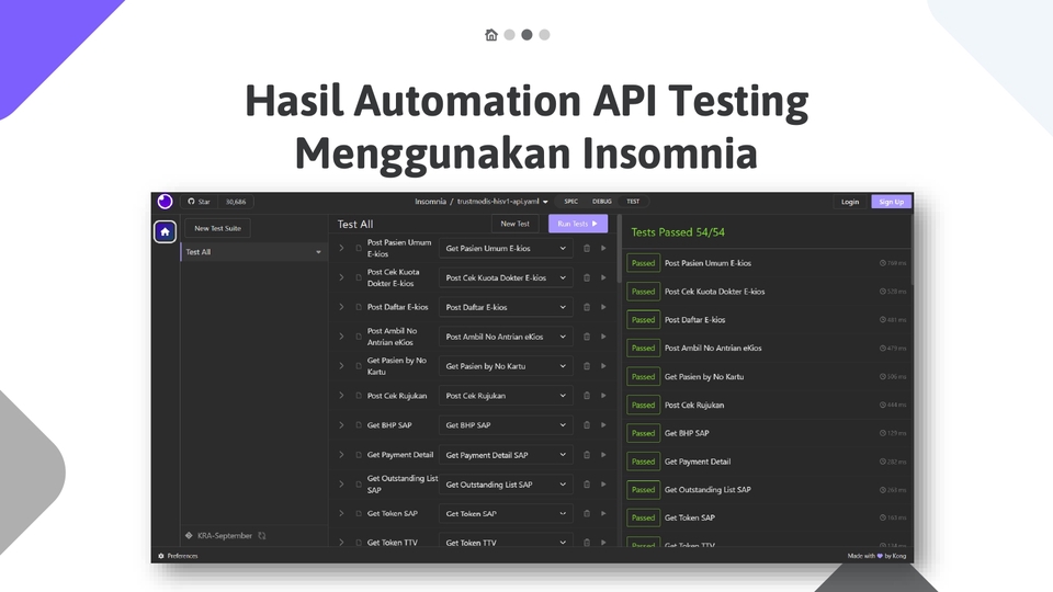Rp300,0 rb1. Pembuatan Test Scenario 2. Proses pengujian mandiri 3. UAT kepada client secara online Pengerjaan dilakukan dalam 3-5 hari. Anda akan mendapatkan semua dokumen hasil testing yang sudah dilakukan.