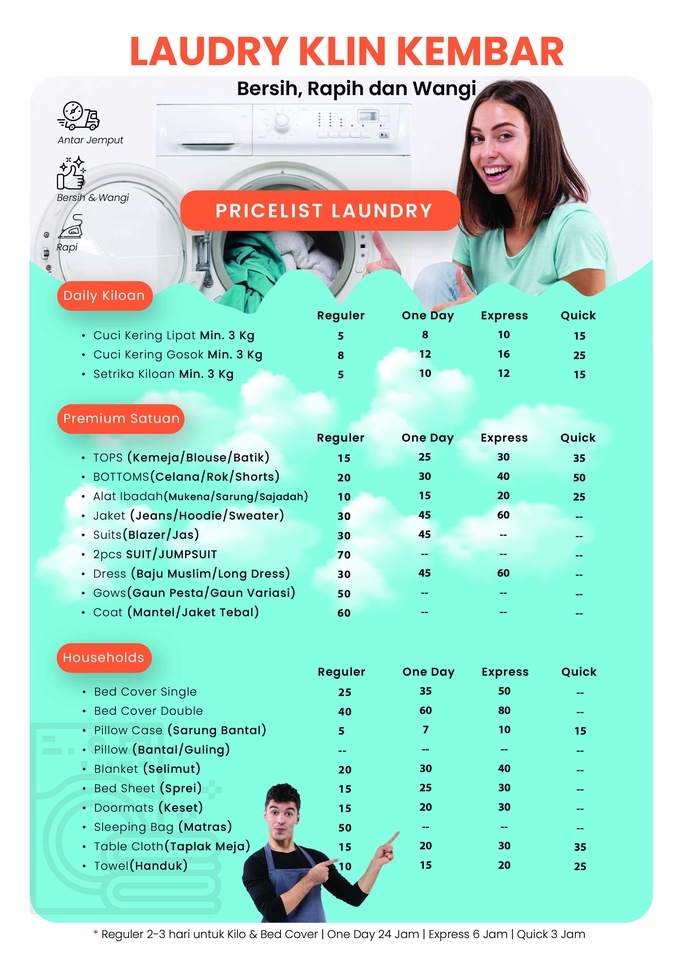 Anda akan mendapatkan hasil desain dalam bentuk source .PSD dan format JPG high resolution. Keterangan lebih lanjut Harga yang kami tawarkan sesuai dengan hasil dan kualitas yang kami berikan. Bila anda bingung mencari referensi kami menyediakan beberapa referensi desain serta revisi sesuai dengan kebutuhan. Langkah Pekerjaan 1. Mulai chat dengan berdiskusi tentang desain yang diinginkan 2. Kirim detail desain yang diinginkan 3. Saya akan memberikan beberapa contoh desain sebagai referensi 4. Pelanggan menyetujui harga yang sudah disepakati 5. Memberikan bahan seperti foto, logo, dan isi konten 6. Memberikan hasil desain 7. Revisi sesuai dengan kebutuhan (apabila ada) 8. Setelah menyutujui hasil revisi hingga hasil akhir pelanggan memberikan review dan rating 9. Terima kasih telah mempercayakan kepada kami. Jangan lupa order lagi ya