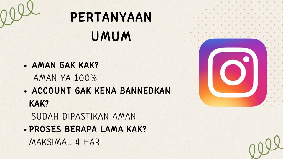 Meningkatkan Followers Instagram Anda dengan Cepat & Aman! Ingin akun Instagram Anda semakin populer? Kami menawarkan layanan penambahan followers Instagram yang REAL dan AKTIF, dengan cara yang aman dan sesuai dengan kebijakan Instagram. Langkah Pekerjaan 1. Diskusi kebutuhan anda lewat chat 2. Lakukan pembayaran 3. Kirim link/ username yang akan ditambahkan followers 4. Pesanan kamu akan kami proses 5. Buyer akan di kirim bukti pekerjaan setelah selesai debgan format PNG/JPG