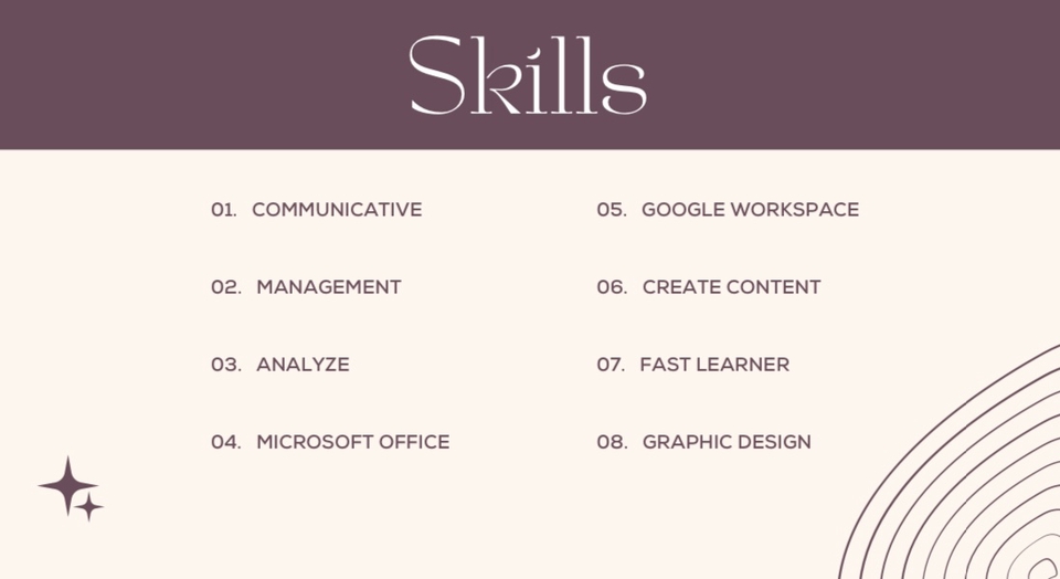 Lulusan S1 Manajemen yang berdedikasi dengan keterampilan berkomunikasi secara efektif, memiliki niat untuk belajar dan konsentrasi.