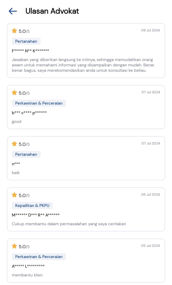 Rp300,0 rb1. Konsultasi by Telepon selama 30 menit secara eksklusif 2. Pemeriksaan Dokumen 3. Legal Analysis (Analisa Hukum) 4. Legal Advice (Nasehat Hukum)