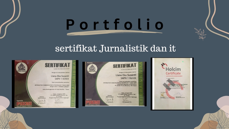 Saya menyukai bidang kreatif dan finance seperti menulis, membuat desain, digital marketing dan akutansi