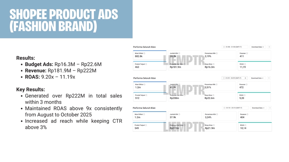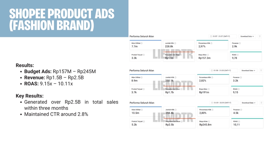 Rp1,3 jt• Full campaign setup • Daily monitoring & optimization (Keyword, Shop, Product) • Full Report Analysis