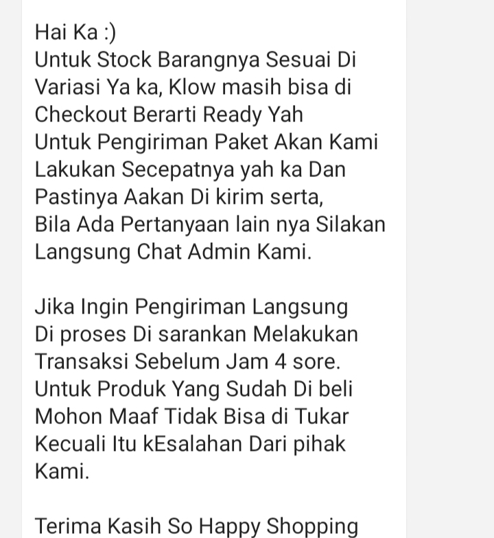Rp1,5 jt√ Paket 30 hari √ Jam kerja : • Senin - sabtu : 08.00 WIB - 18.00 WIB • Minggu : 09.00 WIB - 16.00 WIB √ Respon Chat (fast response) √ Upload produk dan deskripsinya jika diperlukan (Foto produk dari pemberi kerja) √ Rekap order masuk dan meneruskannya kepada pemberi kerja. N.B : minggu tetap open ya