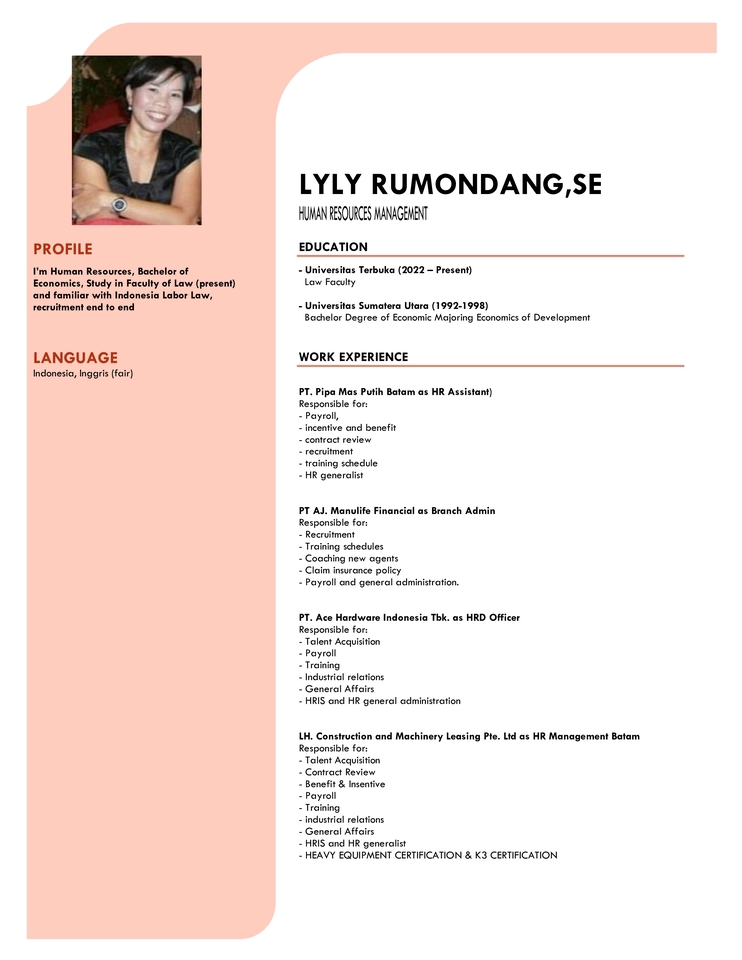 Saya seorang praktisi HRD, memiliki latar belakang selama 20 tahun di bidang Human Resources dan human capital termasuk rekrutmen, penilaian kinerja dan juga rewards karyawan