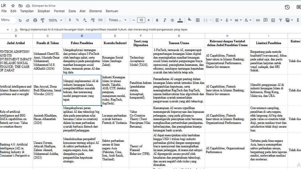 Rp450,0 rb`1. Analisis 15 artikel/jurnal terbaru 2. Narasi literature review: 8–12 halaman 3. Tabel analisis dengan kolom: inti + teori, limitasi, future study 4. 2 kali revisi 5. Output: Word + PDF