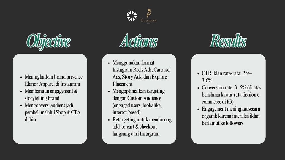 - • Manajemen 2 platform (Instagram + TikTok/Facebook)