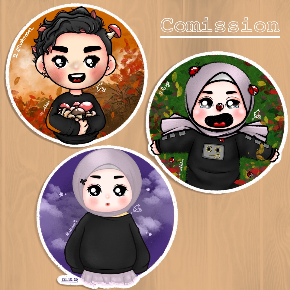 Rp70,0 rb1 wajah (Headshot). Chibi bagian wajah/kepala saja. free simlple background Waktu pengerjaan 2 hari. Revisi 1X. File final berformat JPG, PNG, Pdf. ps: File master (psd) kena charge +100rb Item tambahan +5rb/item Desain untuk produk , harga disesuaikan dengan kerumitan desain. ps(2): waktu pengerjaan 1 hari (24jam) = 75rbu