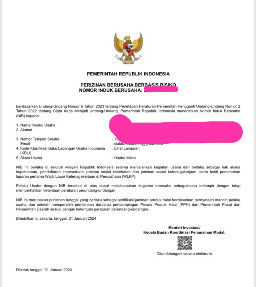 Rp650,0 rb- file pdf dan word NIB dengan maksimal 3 KBLI