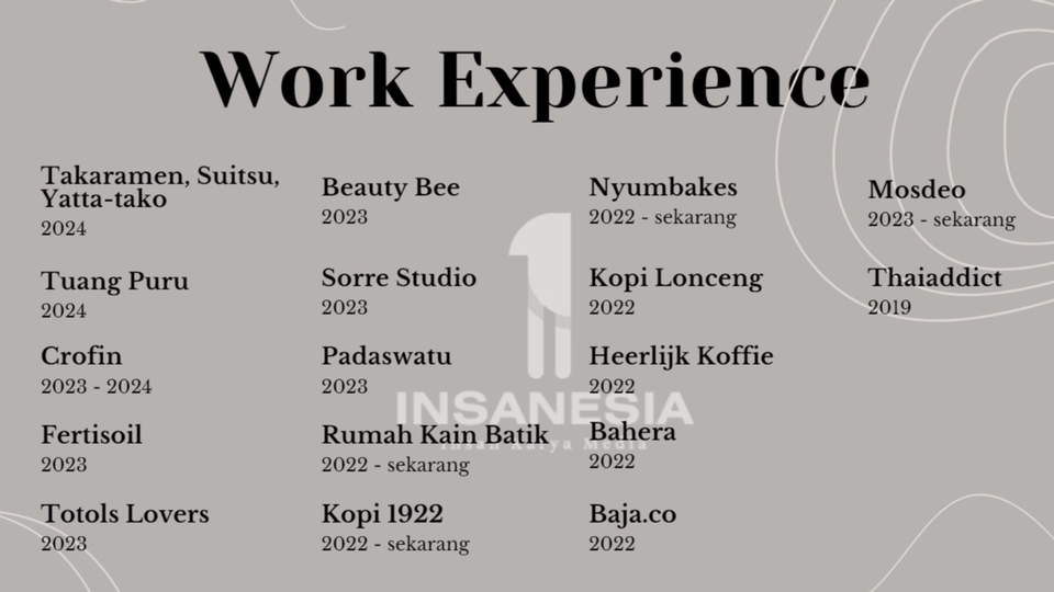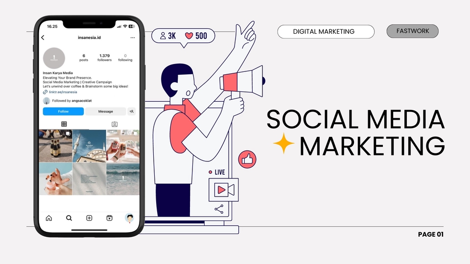 Membantu perusahaan dan individu dalam mencapai keberhasilan di dunia digital, khususnya melalui platform Instagram dan Tiktok. Memulai digital marketing dari tahun 2022 dan selalu berkomitmen untuk menjadi mitra terpercaya dalam pengembangan merek dan visibilitas online. Langkah Pekerjaan 1. Kirim brief dan aset untuk keperluan sosial media 2. Pengerjaan content