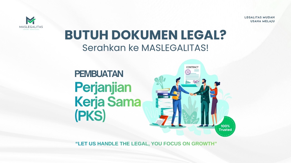 Jasa Pembuatan Perjanjian Kerja Sama (PKS) Dokumen PKS ini disusun secara profesional dengan format hukum yang jelas, detail, dan mudah dipahami sesuai dengan bidang usaha anda. Sangat cocok untuk UMKM, influencer, bisnis baru, hingga kerja sama skala kecil maupun menengah. Ruang lingkup PKS ini mencakup penyusunan klausul: ✔ Identitas para pihak ✔ Ruang lingkup kerja sama ✔ Hak & kewajiban ✔ Skema pembagian keuntungan/fee ✔ Klausul kerahasiaan ✔ Force majeure ✔ Penyelesaian sengketa ✔ Penutup + paraf/tanda tangan Dan Klausul Lainnya. Layanan ini cocok untuk: UMKM - usaha kuliner - reseller–supplier • influencer • bisnis rumahan - kerja sama proyek - perorangan maupun perusahaan Catatan: Jika Anda membutuhkan penyesuaian klausul tertentu, tambahan pasal, atau ingin dibuatkan perjanjian yang benar-benar spesifik dengan kebutuhan bisnis Anda, silakan hubungi kami langsung.